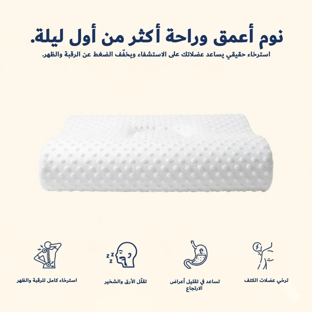 مش مجرد وسادة عادية – التصميم بتاعها بيحافظ على الانحناءة الطبيعية لرقبتك ويقلل الضغط على الفقرات العنقية (C5/C6). النتيجة؟ نوم عميق من غير ألم وصحيان بنشاط حقيقي